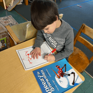 The Kindergarten Program is available for children who are at least 4 years 9 months old. Students attend morning classes as described and then meet as a smaller group for the Kindergarten Program. In the afternoon, students work with more complex materials and enjoy group activities such as writing class books, studying the human body, writing and performing plays, and other activities that arise from the group’s interests. Our Kindergartners also have the unique opportunities to prepare and enjoy lunches together and hike in the reservation land just up the street from King’s Wood.